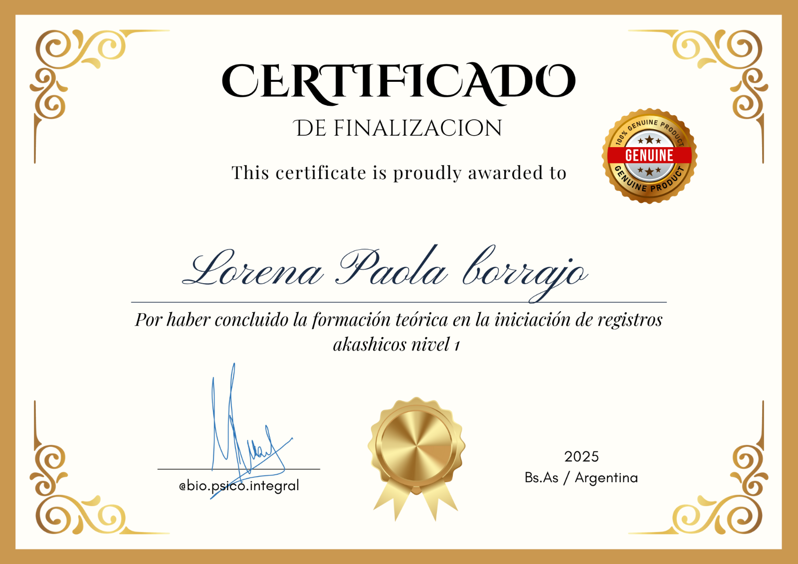 Si entregamos certificacion que cuenta con un doble aval por parte de bio.psico.integral y de la Asociacion de Terapeutas Alternativos Hispanoamericanos.